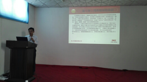 隨后會(huì)議由公司技術(shù)服務(wù)部范開見經(jīng)理作了關(guān)于《近期市場疾病流行情況及產(chǎn)品使用說明》的精彩報(bào)告。從地方區(qū)域差異、飼養(yǎng)模式不同、飼養(yǎng)品種等方面結(jié)合公司產(chǎn)品特點(diǎn),進(jìn)行集中講解。著重強(qiáng)調(diào)了管理重于治療的養(yǎng)殖理念。范經(jīng)理清晰的講課思路以及激情輕松幽默的講課方式,讓大家加深理解了產(chǎn)品。營造了濃厚的學(xué)習(xí)氛圍,提高了大家的產(chǎn)品知識(shí)水平,為后續(xù)的產(chǎn)品推廣和市場銷售打下扎實(shí)的理論基礎(chǔ)。
