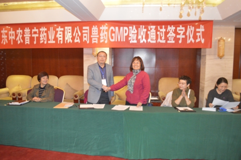經(jīng)專家組討論評分, 雙方隨后進行簽字儀式,陳玲科長宣布我公司通過獸藥GMP驗收,并對我公司表示祝賀。市畜牧局李華副局長代表大家對專家組的辛勤工作表示感謝,同時指出專家的講評指導對全體員工是一次難得的GMP學習過程,專家組提出的中肯建議對企業(yè)是一筆寶貴的財富。并祝賀公司順利通過驗收,希望以此為契機,為畜牧業(yè)做好服務(wù)的同時取得更好地效益,再接再勵,把企業(yè)做得更大、更強,為獸藥行業(yè)健康發(fā)展做出更大的貢獻。