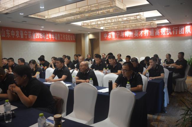 7月12日-15日山東中農(nóng)普寧生物科技集團(tuán)中農(nóng)普寧藥業(yè)2019上半年工作會(huì)議在泰安金盛大酒店圓滿召開(kāi),本次會(huì)議分別從國(guó)學(xué)培訓(xùn)、業(yè)績(jī)倍增系統(tǒng)培訓(xùn)、市場(chǎng)銷(xiāo)售匯報(bào)、技術(shù)培訓(xùn)、旅游活動(dòng)五個(gè)部分進(jìn)行。