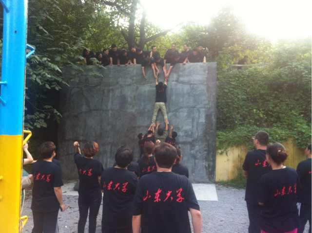 近日,公司康總參加山東大學MAB總裁班第二季的學習,并在微信上分享了部分學習內(nèi)容?悼倢ν卣褂柧毟形蚝苌,方法,合作,團隊配合,信任,感恩,都融在里面,最后的畢業(yè)墻異常艱難,46個人不借任何外力,全部爬上4米多的水泥墻,有女士,也有近60歲的老先生,腳、手、脖子磨破了,沒有一個人叫苦!17分鐘讓團隊成員淚流滿面!并表示找個合適的機會也帶自己的團隊來體驗一次,讓大家真正感悟什么是合作?什么是團隊的力量!