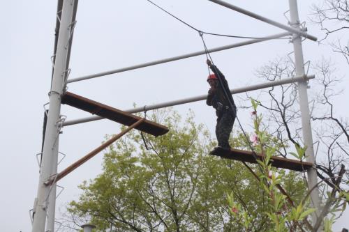 活動(dòng)伊始,在張教練、王教練的指導(dǎo)下大家進(jìn)行了破冰熱身、團(tuán)隊(duì)組建和團(tuán)隊(duì)展示。隨后,正式開始今天的拓展訓(xùn)練。拓展項(xiàng)目有“高空跨越”、“信任背摔”和“挑戰(zhàn)150”等。