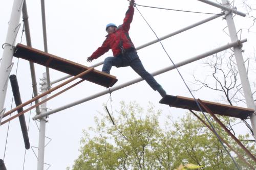 在“高空跨越”項(xiàng)目中,多數(shù)人心存膽怯,特別是女員工,更是神情緊張,但在教練的指導(dǎo)和大家的互動(dòng)鼓勵(lì)下,氣氛逐漸舒緩?罩幸恍〔剑松淮蟛健薄案呖湛缭健弊尨蠹彝黄谱晕,克服了心理恐懼,在團(tuán)隊(duì)的加油鼓勵(lì)下,每個(gè)人都順利通過。